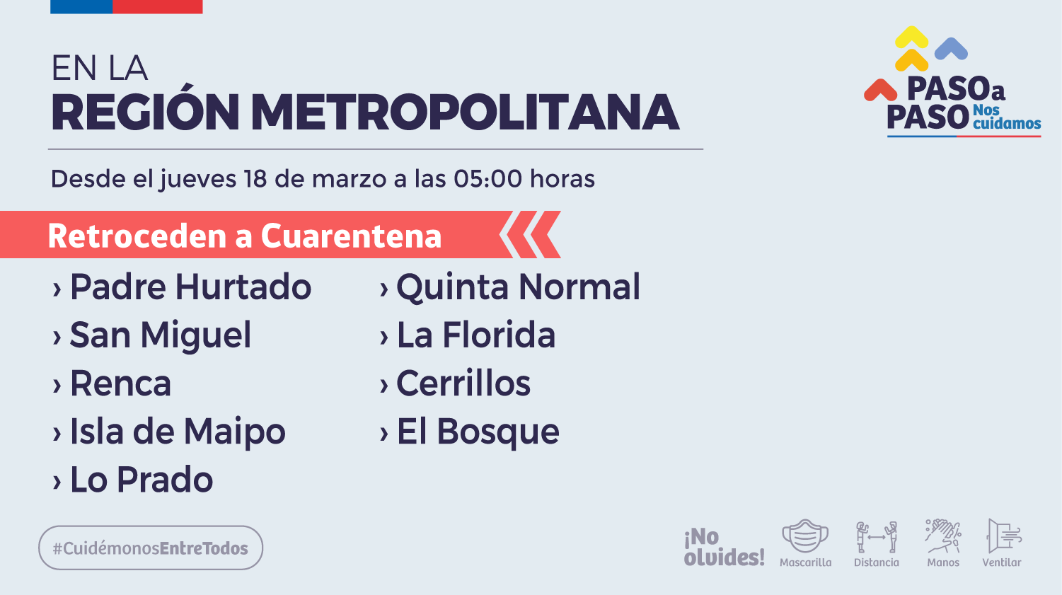 Además, se restringió el pase de movilidad. Qué significa, qué comunas son, restricciones y qué se puede hacer. Coronavirus en chile plan paso a paso: Además, la banda horaria para realizar actividad deportiva establecida para las comunas en cuarentena se prolongará desde las 06:00 horas hasta las 09:00 horas. Un total de 28 comunas en el país, incluyendo nueve de la región metropolitana, ingresaron a cuarentena este jueves desde las 05:00 horas